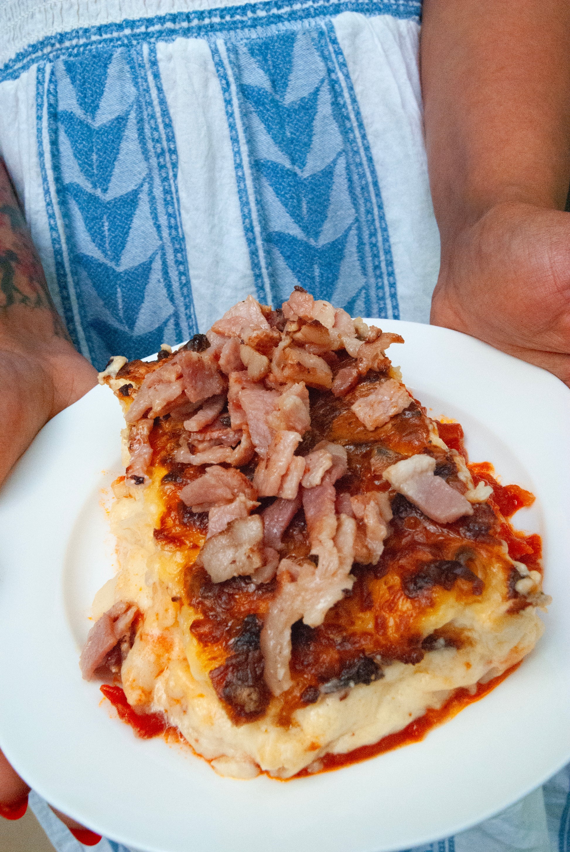 A comforting twist on a classic favourite. Rich, cheesy macaroni layered over a bed of Napolitana sauce, generously topped with crispy, golden bacon.